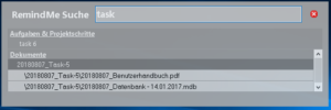 Wer während er im Internet surft oder Mails bearbeitet schnell im RemindMe etwas suchen möchte, kann den Dialog zur Schnellsuche dazu verwenden. Mit der Tastenkombination Strg + Leertaste öffnet sich dieser.